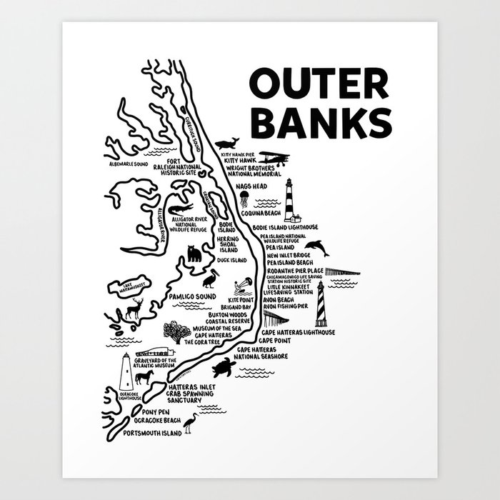 Outer Banks Map Art Print by Whereabouts Shop | Society6
