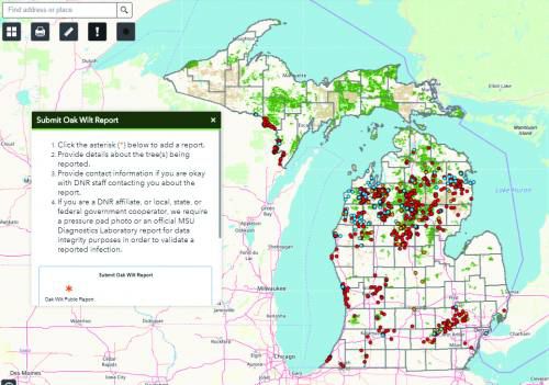 Oak Wilt Michigan Map – “Pressure Pads” a sympton of Oak Leaf Wilt. NORTHERN MICHIGAN (WPBN/WGTU) — Now that most of the leaves have fallen, there’s some yard maintenance that’s recommended for this time of year. . If you go: Seating can become available on short notice if there are cancellations. And the bar is first come, first served. Editor’s note: This story first appeared in the Axios Des Moines newsletter .