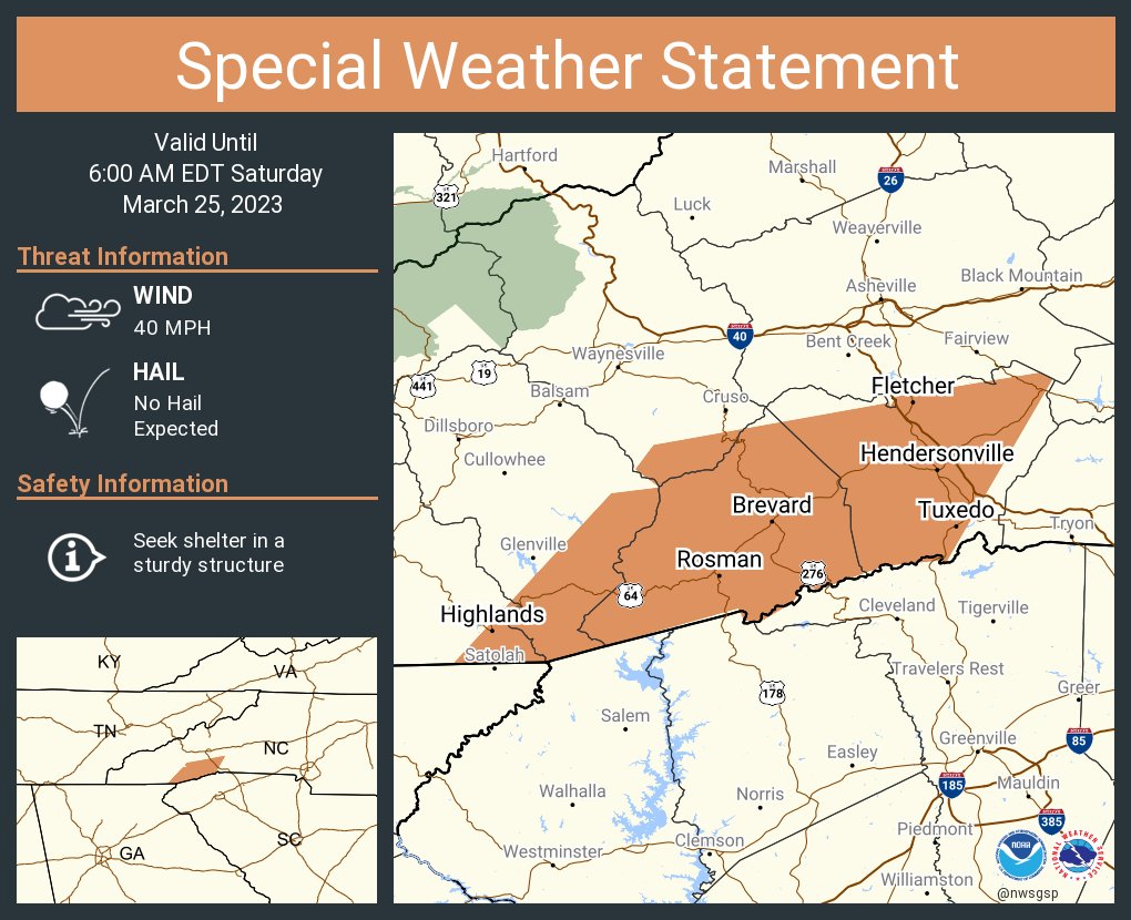 Weather Map Hendersonville Nc – Night – Partly cloudy. Winds S at 6 mph (9.7 kph). The overnight low will be 45 °F (7.2 °C). Mostly cloudy with a high of 62 °F (16.7 °C) and a 60% chance of precipitation. Winds SSE at 6 to 8 . Heavy rainfall continues moving through much of Western North Carolina and Upstate South Carolina, increasing the potential for flooding in several areas. .
